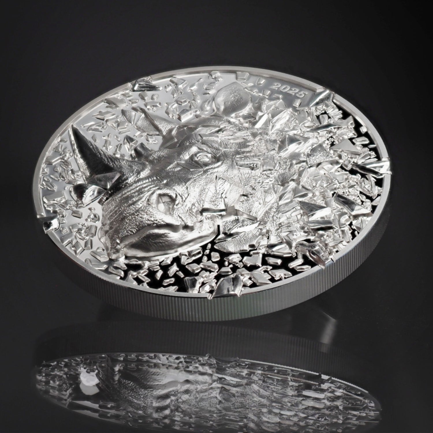Struck from 3oz of 99.99% pure silver to Proof quality, this massive 50mm coin showcases the rhino in incredible realism thanks to CIT's innovative technology. Every detail, from the horn to the finely polished textures and dark contrasts, is brought vividly to life — even down to the piercing expression in the animal’s eye. With a worldwide mintage limited to just 999 coins, and presented in a case with a Certificate of Authenticity, this release is a true masterpiece of modern minting and an essential addition to any wildlife or silver collection.