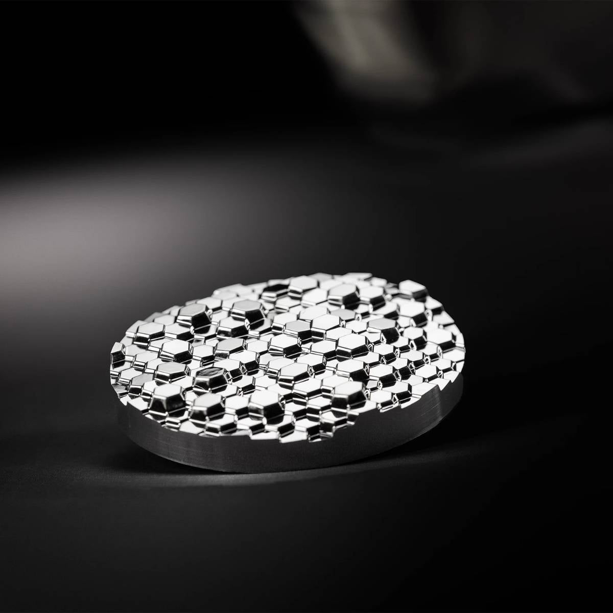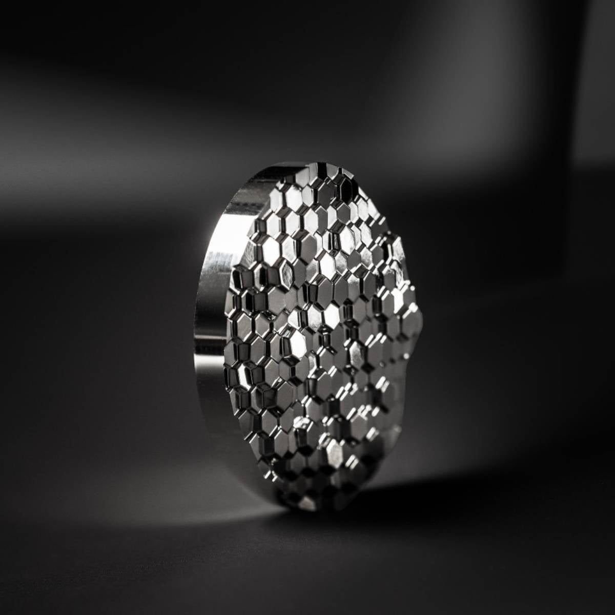Its intricate hexagonal pattern creates the illusion of a fractured rock face, capturing the raw power of nature's relentless forces.
