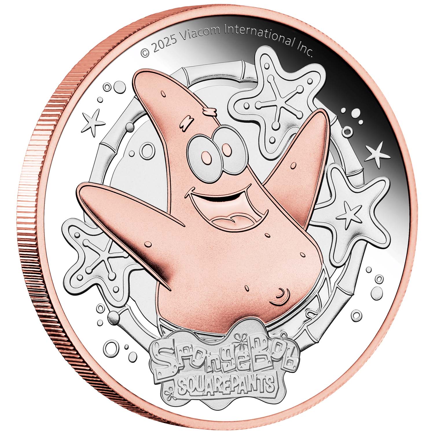 Carrying a cheerful portrait of Patrick, this official legal tender issue is struck from 2oz of pure, glittering 99.99% silver. Appropriately, the depiction of Patrick has been precisely plated in 22-carat pink gold! Also carrying the official SpongeBob SquarePants logo, this coin will be sought after by SpongeBob fans worldwide – in part due to the stunning presentation! A must-have for the packaging alone, each coin is set in a case representing Patrick’s house in Bikini Bottom!