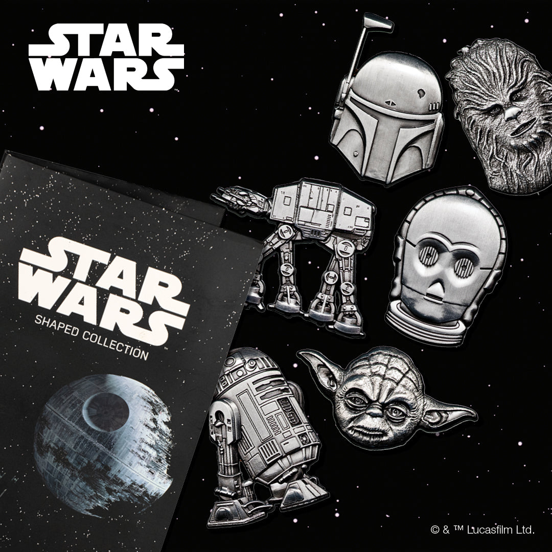 Comprises twelve Star Wars commemoratives – each struck in the shape of a Star Wars icon!