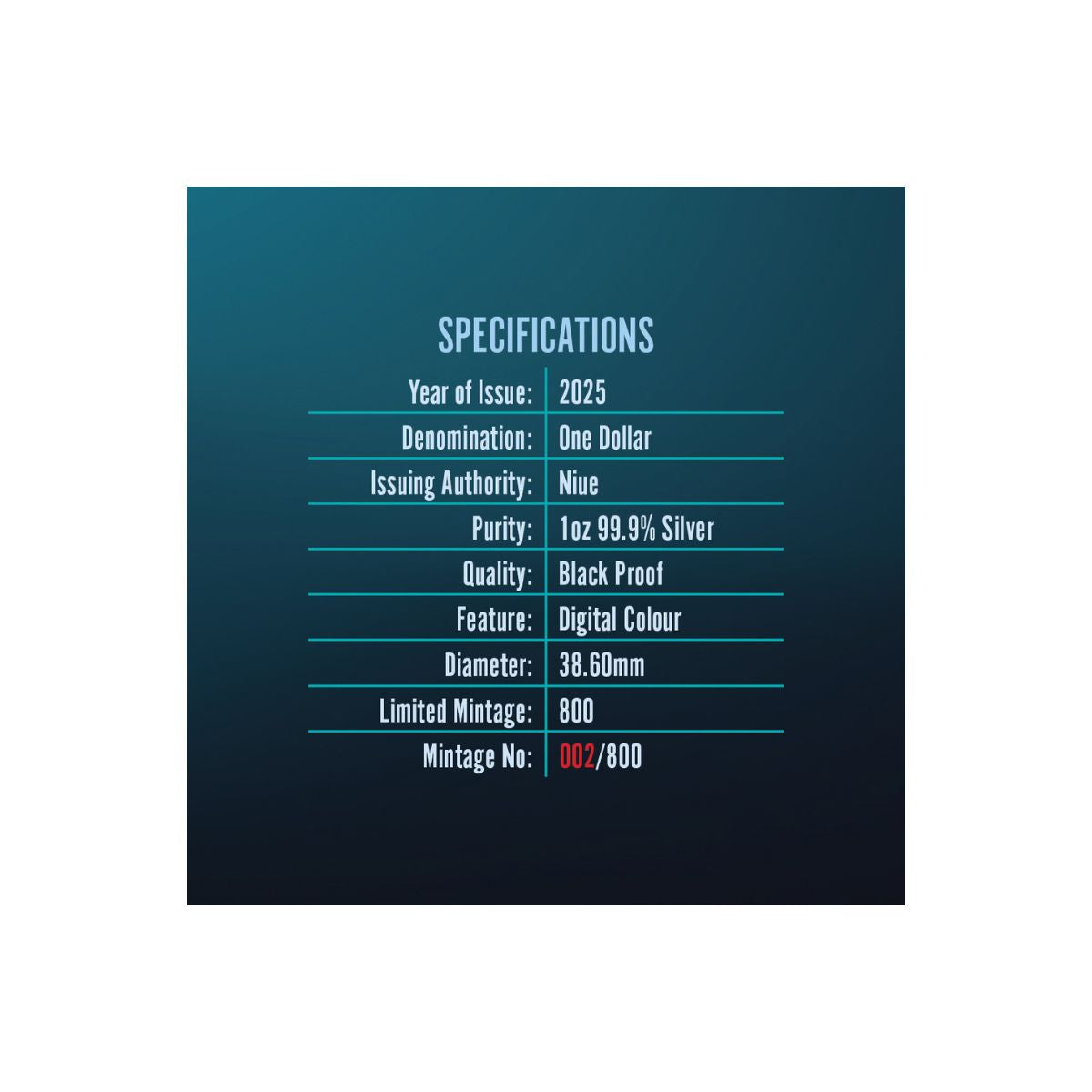 A distinctive, moving tribute to one of the world’s most famous disasters, with a tiny mintage of just 800, we are proud to present the Titanic 2025 $1 1oz Silver Black Proof Coin.