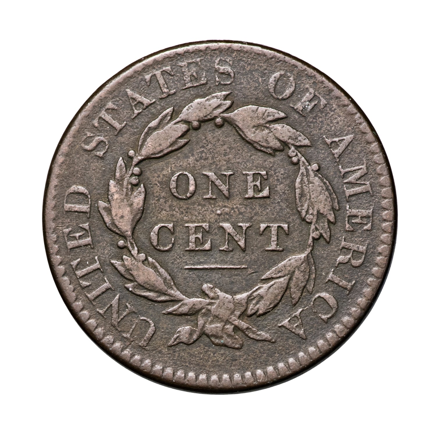 The Coronet Head Cent is known as a ‘large cent type’ – a type that, due to reasons of economy, was replaced by the small Flying Eagle Cent in 1857. Designed by Robert Scot – the first Chief Engraver of the US Mint, appointed in 1793 – the type has been dubbed the Coronet Head due to the crown worn by Liberty on the obverse. Struck exclusively by the US Mint in Philadelphia – the first & oldest US national mint – during the presidencies of James Monroe, James Quincy Adams and Andrew Jackson, the Coronet Head Cent is a remnant of a seminal period of US history, defined by internal expansion and consolidation of power on the international stage.