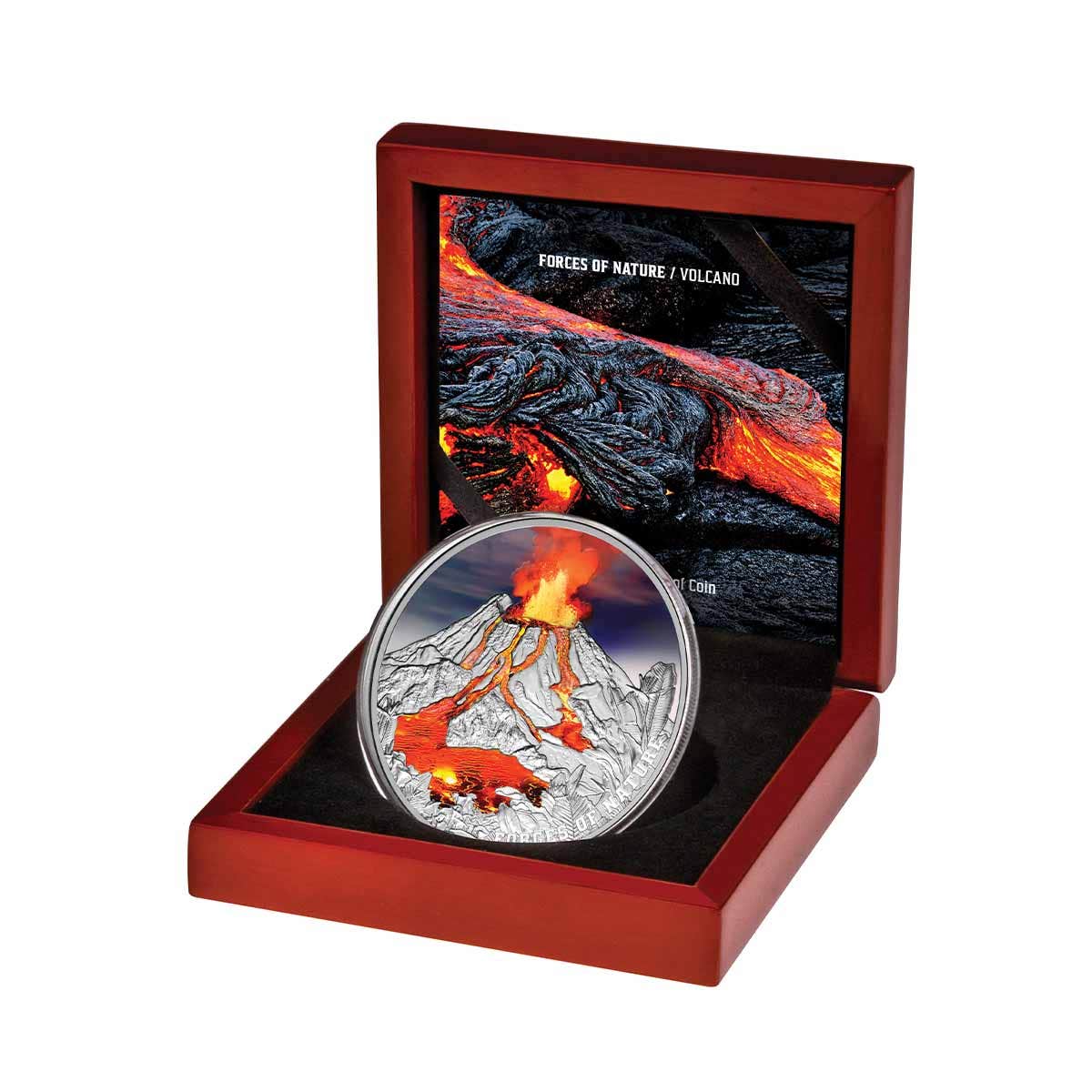 Struck from a whopping 2oz of 99.9% silver, this official legal tender issue is notable for the spectacular union of full-colour and a stunning selective lacquer finish. With this process giving the fiery flow of lava a realistic, ‘wet’ look, this coin will command attention worldwide. With just 750 struck, you must act now!